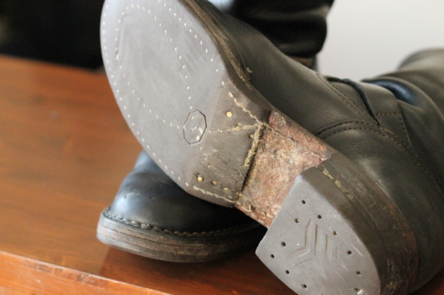 オリジナルのVibram#705ソールはすり減りツルツルの状態で